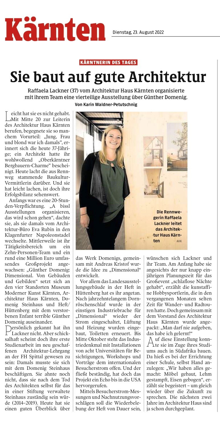 Kleine Zeitung: "Sie baut auf gute Architektur"