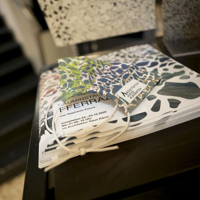 weiterlesen …Künstlerin Stephanie Klaura entwickelte vor Ort, im Architektur Haus Kärnten in intensiver Auseinandersetzung mit dem Gebäude, ein eigenes „Architekturhaus-Textil“. Inspiriert vom Bierflaschen-Terrazzo im Foyer des Napoleonstadels produzierte sie, anhand des manuellen Siebdrucks, Stoffbahnen mit dem „FFERRAZZO Muster“.