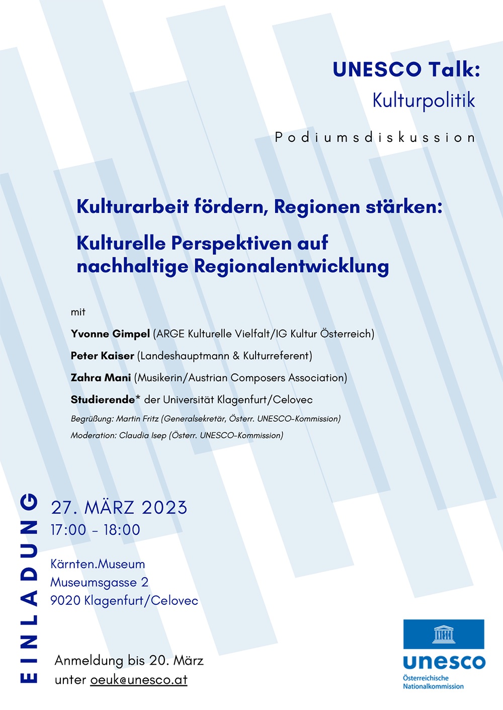 Die Österr. UNESCO-Kommission und die ARGE Kulturelle Vielfalt laden ein.