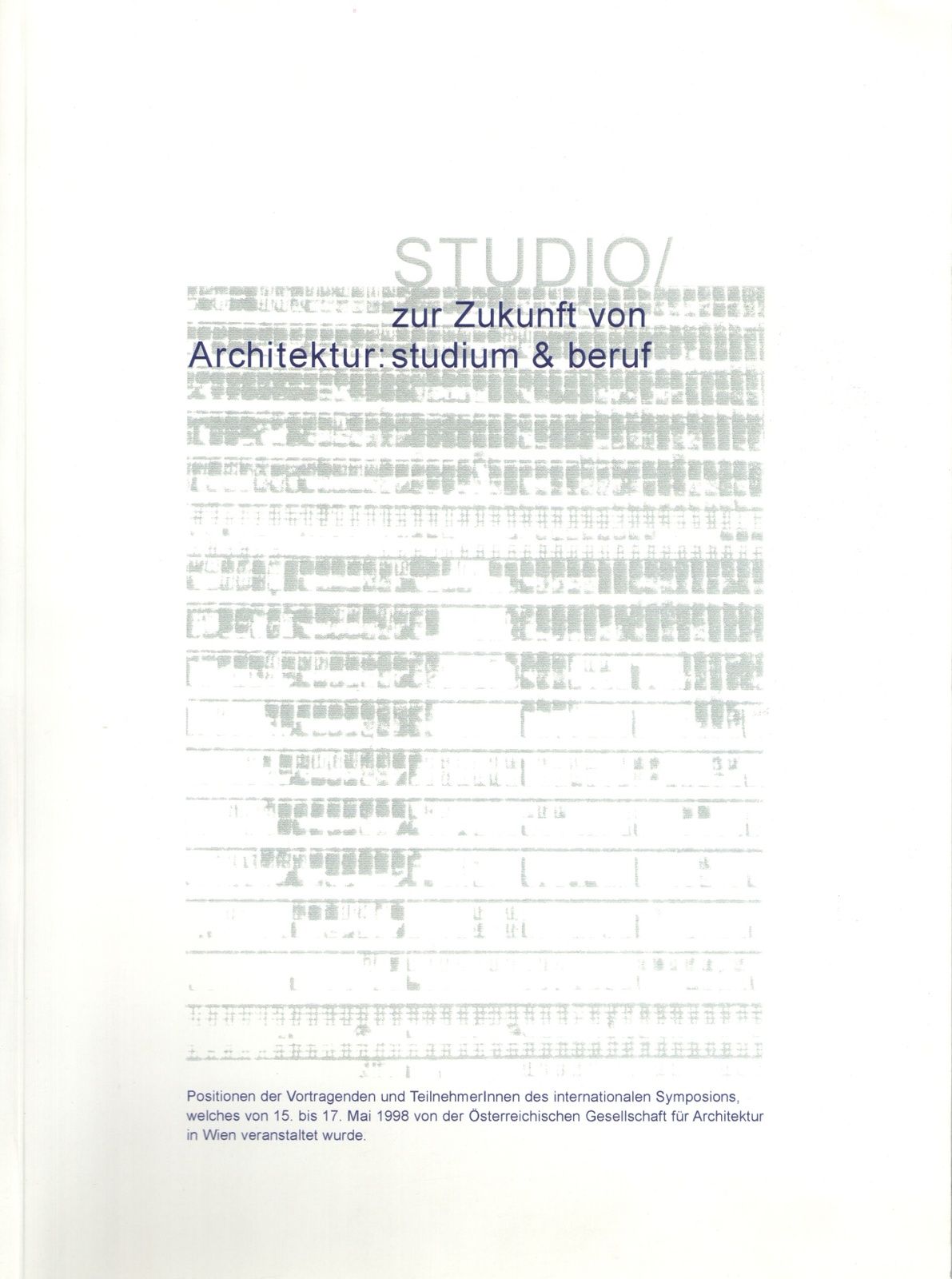 Broschüre, Eigenverlag 1998, 72 S., €15Positionen der Vortragenden und TeilnehmerInnen des gleichnamigen internationalen Symposions vom 15. bis 17. Mai 1998