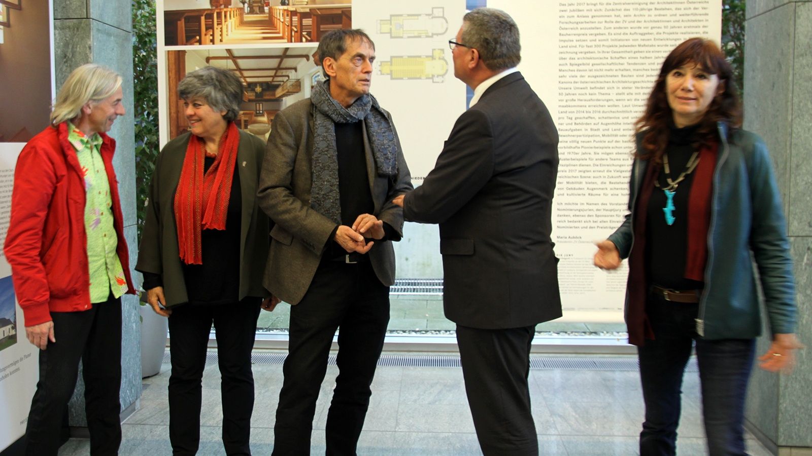 Ausstellung - EröffnungEröffnung der Ausstellung aus Anlass des 50-Jahrjubiläums des Österreichischen Bauherrenpreises (Dauer bis 29. November) im Foyer des Landhauses in St. Pölten.