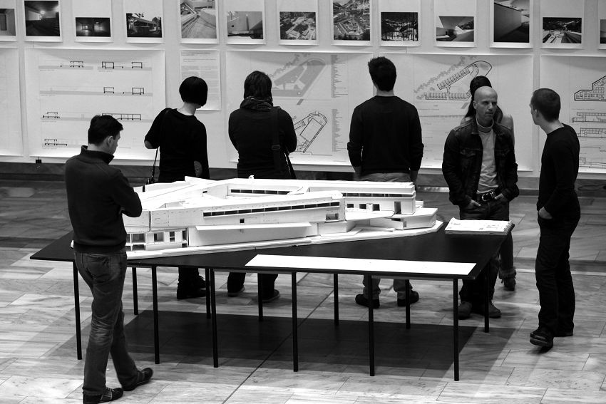 Die Ausstellung, die davor bereits in Hombroich/Deutschland sowie Innsbruck Station machte und noch dieses Jahr in Berlin gezeigt wird, legt ihr Hauptaugenmerk auf Skizzen und Modelle von zehn aktuellen Bauten und Projekten aus dem Kulturbereich. „Àlvaro Siza hat sich zu einem Markenzeichen entwickelt. Er hat seinen Weg konsequent verfolgt und ist dabei immer authentisch geblieben“, sagt FH Lektor Adolph Stiller in seiner Eröffnungsrede und bezeichnet Siza gleichzeitig als Weltfigur, die immer Architektur-Handwerker geblieben ist.