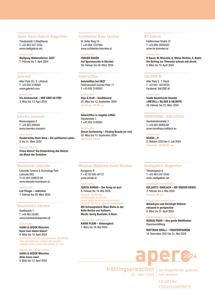 APERÒ – Frühlingserwachen der Galerien und Museen in Klagenfurt im Architektur Haus Kärnten