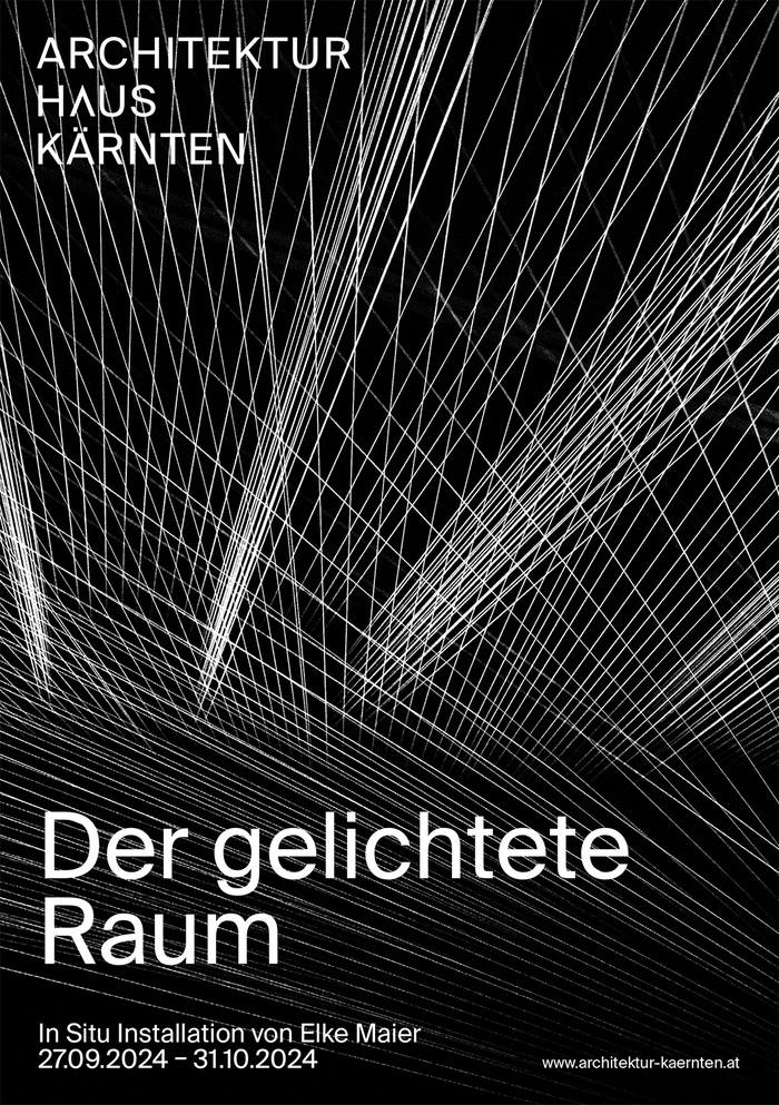 InstallationDie Künstlerin Elke Maier konzipiert eine Rauminstallation für das Architektur Haus Kärnten, deren Idee, Form und Realisierungsprozess untrennbar verbunden sind mit der Authentizität des Ortes in all seiner Vielfalt und Komplexität, die von daher einzigartig und auf keinen anderen Ort übertragbar ist und mit der sie ganz bewusst in den Raum eingreift. Mit Hilfe eines einfachen Materials, feinstes weißes Baumwollgarn, entsteht ein einzigartiges auratisches Wechselspiel zwischen Licht, Raum und Materie. Mit einem Minimum an Material und Gewicht gelingt es ihr, voluminöse Raumlandschaften von atmosphärischer Dichte zu erzeugen. Dabei handelt es sich nicht um punktuelle Interventionen, sondern um eine Entwicklung des Werkes von Anfang an in kontinuierlichem Dialog mit dem Raum und Licht. Die Fäden schaffen einen von der Raumschale, den Wänden völlig losgelösten, selbstständigen Raumkörper. (Nora Leitgeb)