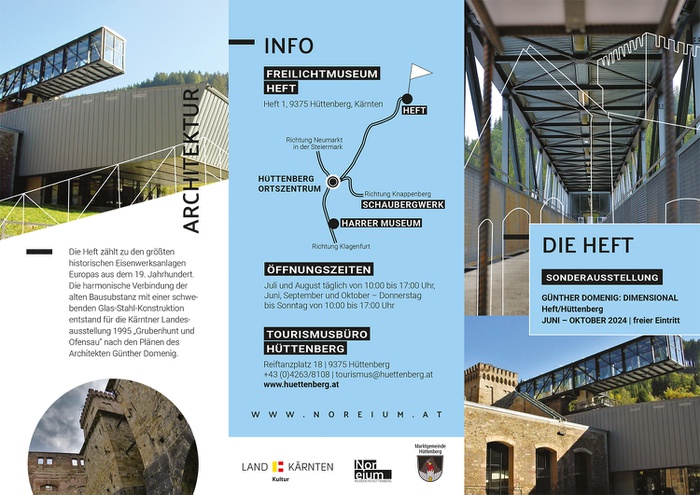 Die Heft, eine der größten historischen Eisenwerksanlagen Europas aus dem 19. Jahrhundert, kann zu den Architekturtagen 2024 besichtigt werden. Die harmonische Verbindung der alten Bausubstanz mit einer schwebenden Glas-Stahl-Konstruktion entstand für die Kärntner Landesausstellung „Grubenhunt und Ofensau” für die Kärntner Landesaustellung 1995 nach den Plänen des Architekten Günther Domenig. Die Heft ist seit 2022 wieder als Freilichtmuseum für Besucher:innen geöffnet.