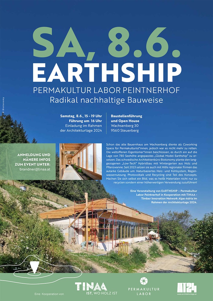 Eine Veranstaltung von EARTHSHIP – Permakulturlabor Peintnerhof in Kooperation mit TINAA - Timber Innovation Network Alpe-Adria im Rahmen der Architekturtage 2024.