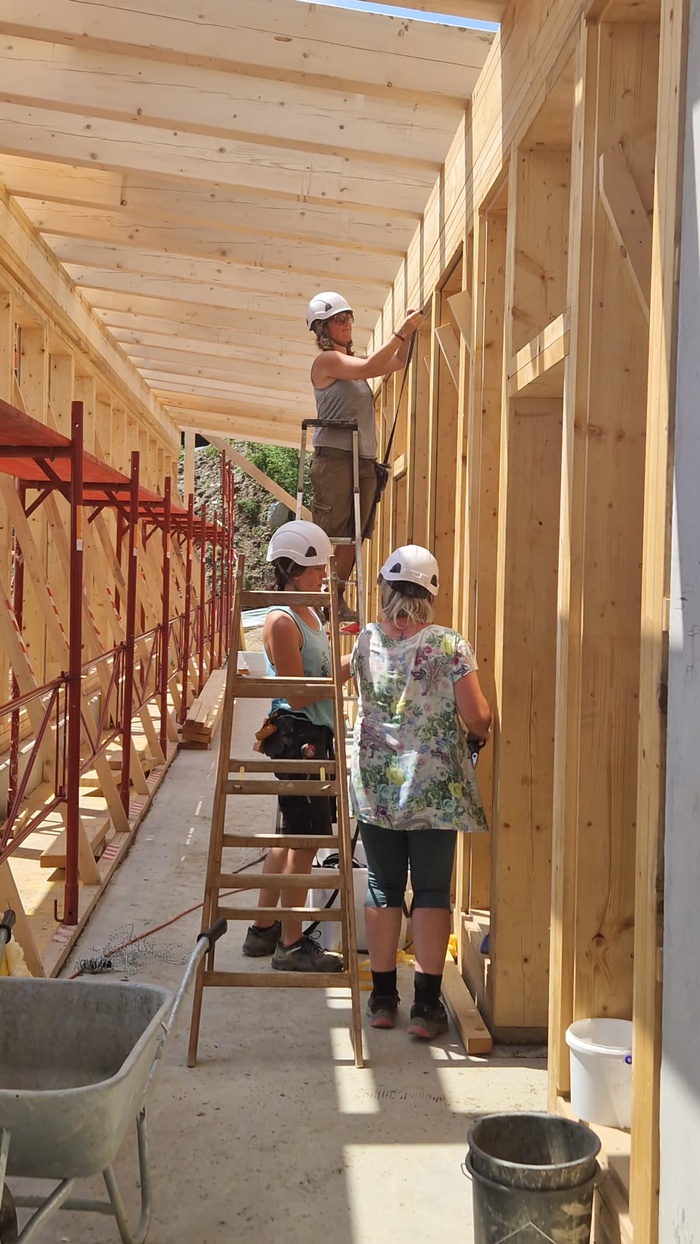Baustellenführung, Open HouseSchon das alte Bauernhaus am Wachsenberg diente als Coworking Space für Permakulturist*innen, jedoch war es nicht mehr zu retten. Die weltoffenen Eigentümer*innen beschlossen, es durch ein auf die Lage von 880m Seehöhe angepasstes "Global Model Earthship" zu ersetzen. Das schwedische Architektenbüro Biotonomy plante den langgezogenen "Low-Tech" Hybridbau mit Wintergarten aus Holz und Pflanzwanne. Seit 2023 setzen sie auch mit Hilfe regionaler Firmen das autarke Gebäude um: Naturbasiertes Heiz- und Kühlsystem, Regenwassernutzung, Photovoltaik und Recycling sind Teil des Konzepts.