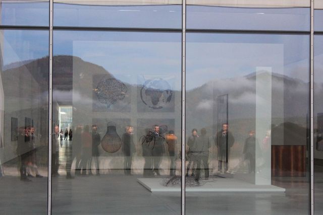 Wie eine Skulptur in der Landschaft ragt der langezogene Museumsbau auf einem stark abfallenden Hochplateau 70m über der Drau. Die Eingangszone orientiert sich zum Ortszentrum von Neuhaus und zum darüberliegenden historischen Schloss des Auftraggebers. Der Kern der Anlage ist die 160m lange tageslichtdurchflutete Ausstellungshalle mit angeschlossenen, großzügigen Terrassen und mobilen Trennwänden.