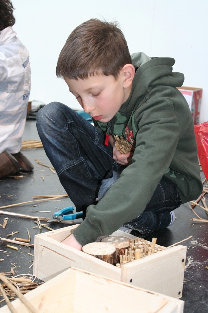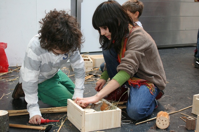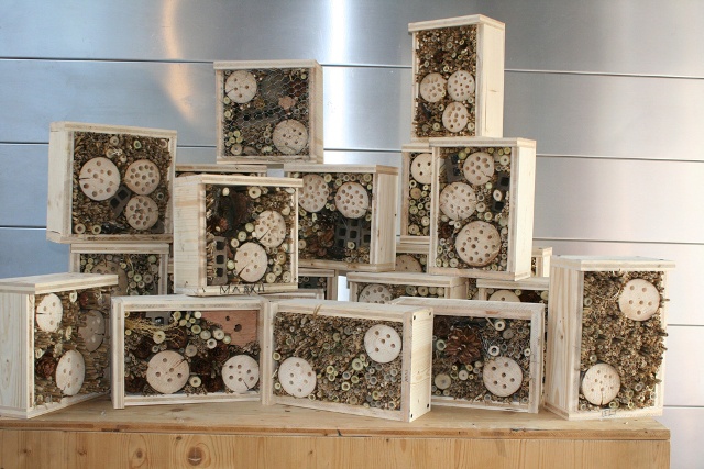 Insektenhotels sind künstliche Nisthilfen aus natürlichen Materialien, wie z. B. Holz, Rindenstücken, Zapfen, Schilf, Bambus, Stroh, Lehm etc., die an, vor Regen geschützten, sonnigen Plätzen z.B. an einer Hauswand, aufgehängt werden und ganzjährig im Freien bleiben. So kommen ihre temporären Bewohner auch gut und sicher über den Winter und sind im Frühjahr gleich zur Stelle, wenn sie dringend gebraucht werden. Neben den für ihre Bewohner optimierten Funktionen der Bauwerke, die erst ermöglichen, die Tiere im Wechsel der Jahreszeiten beim Ein- und Ausfliegen zu beobachten, liegt uns auch die kreative Gestaltung am Herzen – denn schließlich handelt es sich um einen kleinen, aber wichtigen Teil der gebauten Umwelt – der als Zeichen des aktiven Naturschutzes im öffentlichen Raum präsent ist und auch so wahrgenommen werden soll. Jedem/jeder Insektenhotel- Architekten/ -Architektin soll natürlich auch sein/ihr eigenes Bauwerk gefallen und nicht zuletzt das gemeinsame Bauen Spaß machen! Die TeilnehmerInnen des Workshops werden daher die Möglichkeit haben, das eigene Bauwerk nach individuellen Ideen zu gestalten, um es anschließend mit nach Hause zu nehmen – fix und fertig zum Aufhängen!