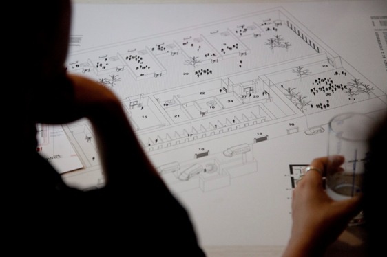 Studierende der Architekturlehrveranstaltung Fluchtraum Österreich 2016 präsentieren ihre Recherchendiagramme zu Beziehungen zwischen Asylwerber und Gastgeber, sowie Tourist und Gastgeber. Gastkritiker sind die Symposiumsteilnehmer des Vortages.