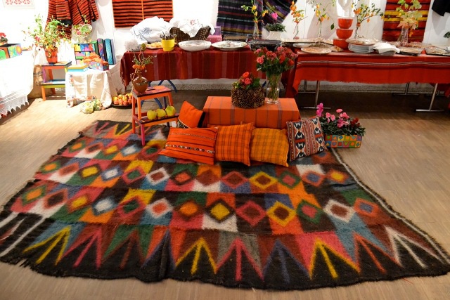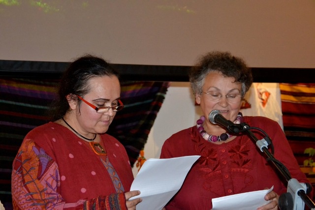 In Fortsetzung zum Workshop „Farberwachen“ gestalteten drei Bulgarinnen einen Abend mit Impulsvorträgen über die Architektur, Lebensweise, Farben, Materialien, Kunst, Geschichte und Tradition in Bulgarien und stellten sie dabei im Bezug zu westlichen Sitten und Bräuchen. Das Thema „Farbe“ wurde weitergedacht und anhand von Textilien, Blumen, Gedichten und Erzählungen poetisch wiedergegeben. Krassimira Dimova gab Einblick in die Geschichte und das Schicksal der Bevölkerung in Bulgarien. Ihre Tochter Anna Dimova las Gedichte vor und stellte ihre farbenprächtigen Kunstwerke aus. Architektin Dora Iliova spannte in ihrem Impulsvortrag einen weiten Bogen über die Entwicklung von typisch traditionellen Wohnhäusern bis hin zu geschichtlich bedingten Umständen in Bulgarien.