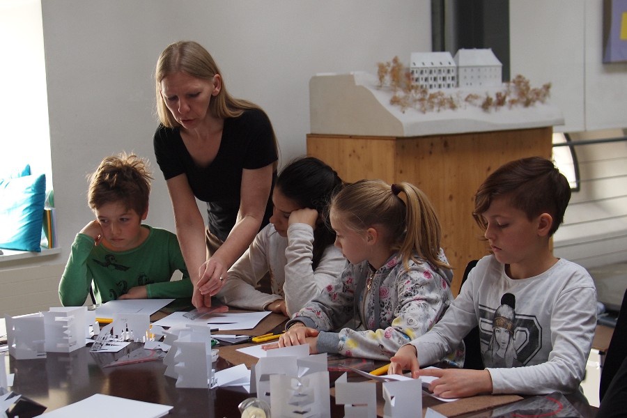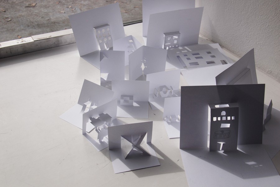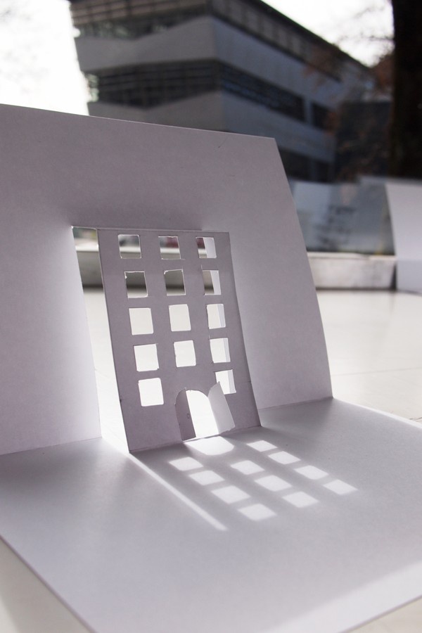 Das erfordert ziemlich viel Vorstellungsvermögen und auch etwas Geschick mit Lineal und Cutter - also Fähigkeiten, die auch ArchitektInnen haben müssen. Ganz einfach ist es nicht, aber mit ein bisschen Fantasie und Geduld schaffen auch wir ein kleines Stück Pop-up Architektur.