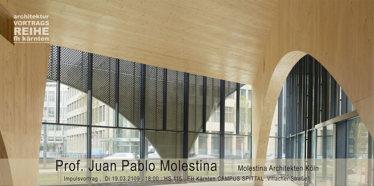 ImpulsvortragProf. Juan Pablo Molestina, geboren 1955 in Quito, Ecuador, machte seinen Master of Architecure am Massachusetts Institute of Technologie in Cambridge. 1989 war er Dozent am M.I.T, 1991 gründete er zusammen mit einem Partner Molestina+Kraus Architekten in Köln. Seit 2001 ist Molestina Professor an der Peter Behrens School of Architecture, Fh Düsseldorf und seit 2011 auch Dekan. Aus der Gruppe MDK entstand 2007 das Büro Molestina Architekten in Köln und einer Niederlassung in Madrid. Am Standort Köln findet man unter der Leitung von Prof. Juan Pablo Molestina (Inhaber und Geschäftsführung) und Barbara Schaeffer (Geschäftsführung) ein Team mit über 15 Mitarbeitern.