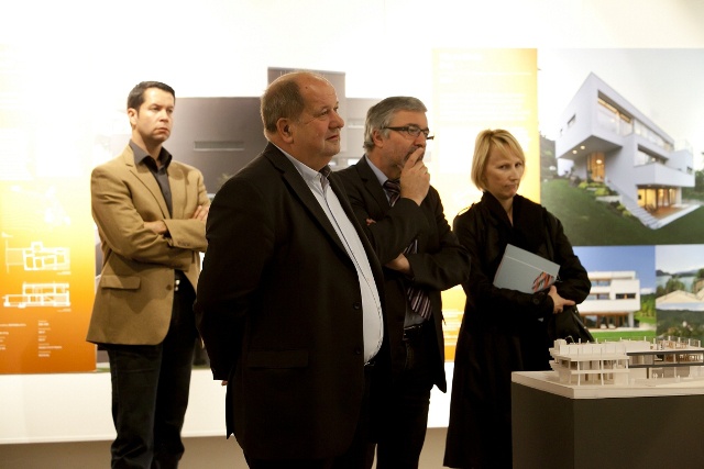Die Ausstellung von Robert Potokar unter dem Titel "Kontext in der modernen Architektur" wurde mit vielen Besuchern aus Slowenien und Kärnten eröffnet. Unter den Gästen war auch Dragica Urtelj, Generalkonsulin der Republik Slowenien in Klagenfurt, die spontan eine Laudito hielt. Nach einleitenden Worten von Luka Skansi, dem Author der begleitenden Publikation, führte Architekt Robert Potokar durch seine Ausstellung und erläuterte seine Arbeitsweise.