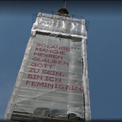 Bereits mehr als 17 mit Kabelbinder und Tüll per Hand bestickte Staubschutznetzte wurden national und international (u.A. auf der Biennale in Rabat, Marokko) auf Baustellen montiert und nun ist eine Solange-Kunstintervention von Katharina Cibulka auch in Kärnten zu sehen. Die großformatigen, im traditionellen Kreuzstich gestickten Sätze, verdeutlichen die anhaltende Notwendigkeit feministischer Forderungen. Die Themenbereiche der Solange-Sätze werden aus zahlreichen Gesprächen rund um das Thema Feminismus mit den beteiligten und betroffenen Akteur*innen vor Ort entwickelt. Könnte diese Intervention im öffentlichen Raum manche Herren dazu inspirieren ihr Verhalten zu ändern? Wielange sind SIE schon / noch Feminist:in?
