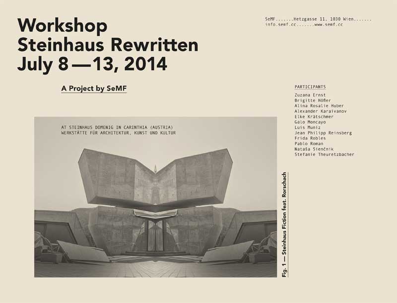 The house has a personality that is perceived differently by each individual. Whether it evokes fascination, disturbance or indifference, reactions and feelings are present, influencing our perception. The involvement with these feelings apart from any institution causes irritation. Similar to the inkblots of the Rorschach test part memory, part fiction. The Rorschach test was a psychological experiment widely used in the 1960s, with which the subjects’ reactions to inkblots where analyzed, in order to get a grasp on their thinking processes. The project “Steinhaus Rewritten” makes use of the process and principle of this psychological experiment. The starting point will be to undergo such a test in order to find methods of notation to capture the emotional response to the environment within and surrounding the Steinhaus. Participants from various fields will be included in order to ensure a wide range of test results (“inkblot exercises”). After the notation process, in other words the scoring, individual perceptions and collected stories will be exchanged in order to evaluate them collectively. “Scores are ways of symbolizing reality – of communicating experience through devices other than the experience itself. The score of a musical event is not itself music any more than the plan and the elevation of a building are the building. But the one predates the other and in our complex society is required by the other. First comes the score and then the performance. But they are inextricably interrelated.” (Lawrence Halprin – RSVP Cycles) This procedure provides a basis for a common path and narrative that leaves room for individual work as well as collaborations. We become like archeologists and poets at once, seeking for evidences of long gone arguments and stories, shaping and constructing them into the present as artists. The collective SeMF undertakes the task to guide a dialogue between the Steinhaus, its environment and its visitors. The stories and sensitivities are captured onto various material. In that way the impact on the social surrounding is uncovered and illustrated. The resulting work will be brought together in an exhibition on site as a physical representation of the psychological response – writing architecture like fiction and telling OUR story.