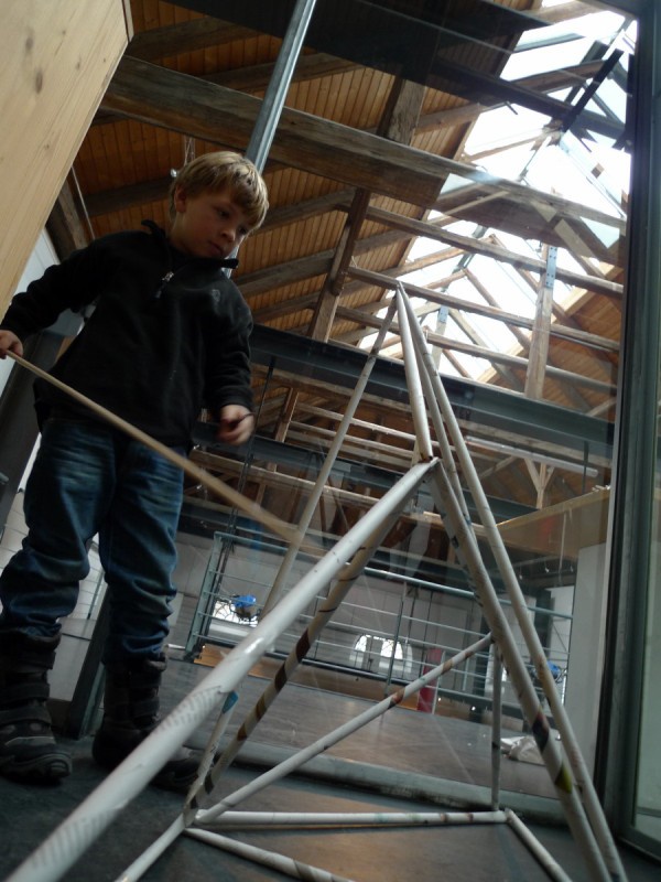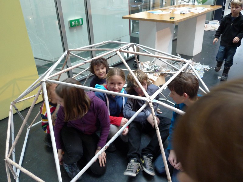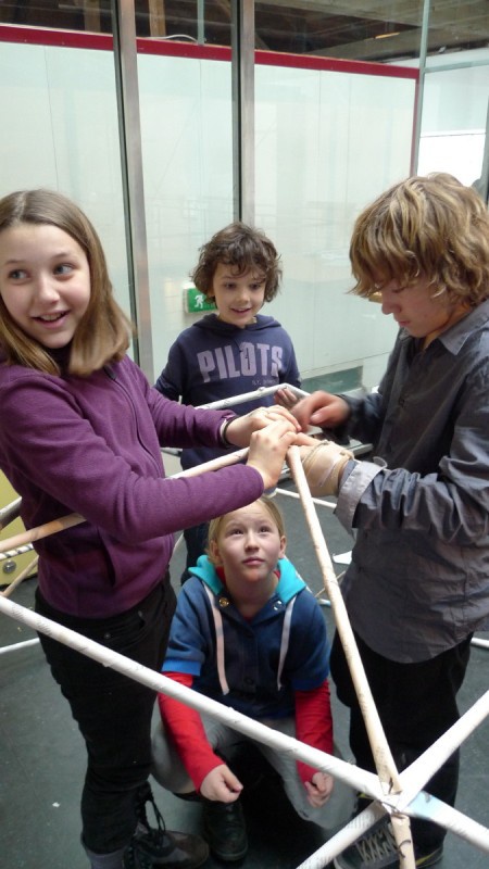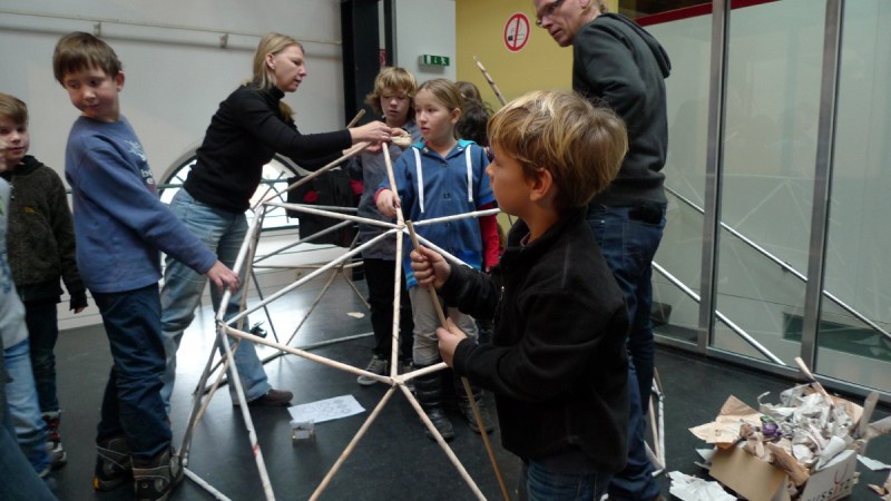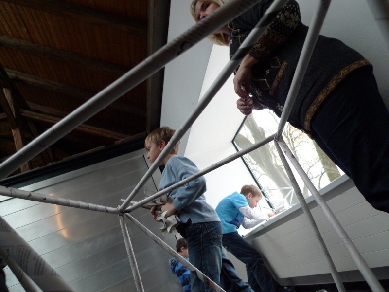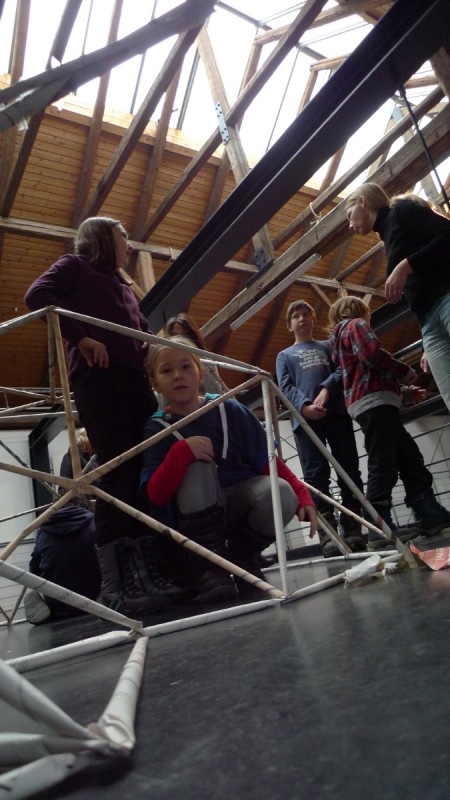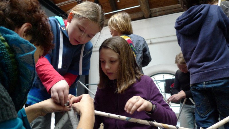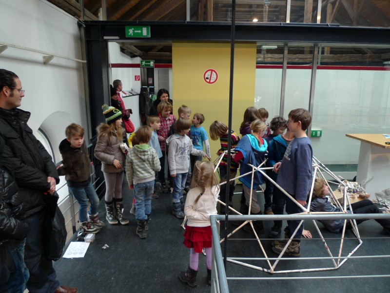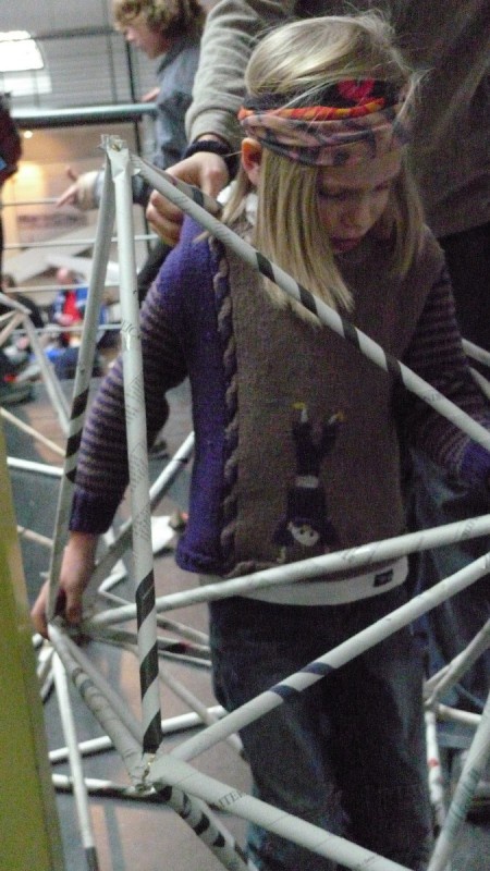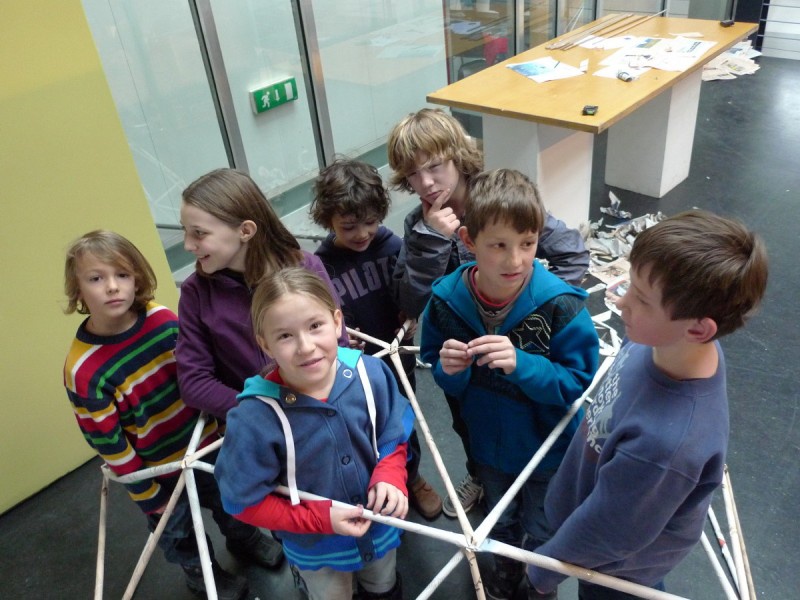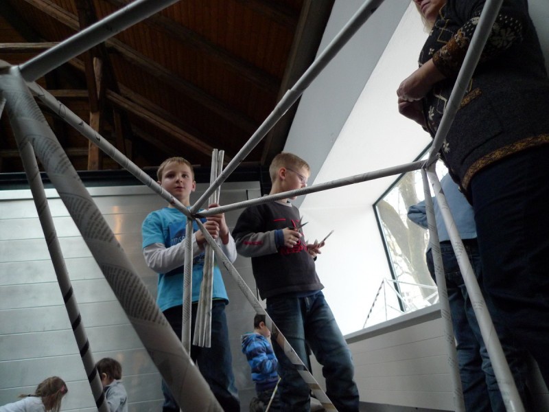 Aus gewöhnlichem Zeitungspapier können mit Hilfe statisch-konstruktiver Grundkenntnisse tragfähige, stabile Stabtragwerke hergestellt werden - was so trocken klingt, kann dennoch viel Spaß machen: Die Kinder experimentieren nach einer kurzen Einführung selbst und finden auch meist selbst die idealen Grundformen heraus, mit denen man große räumliche Fachwerke bauen kann.