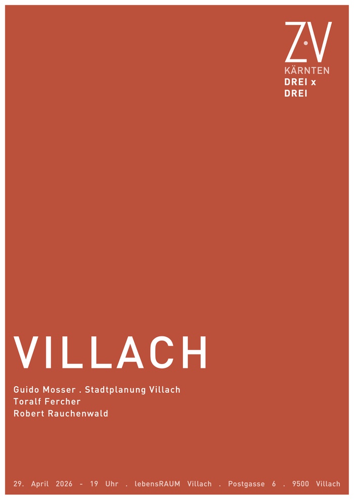 In kompakten 30-minütigen Vorträgen sprechen Kolleg: innen über gebautes, geplantes sowie ihre Gedanken zur Gestaltung des Lebensumfeldes. Die Vortragsreihe startet mit dem thematischen Schwerpunkt VILLACH.
