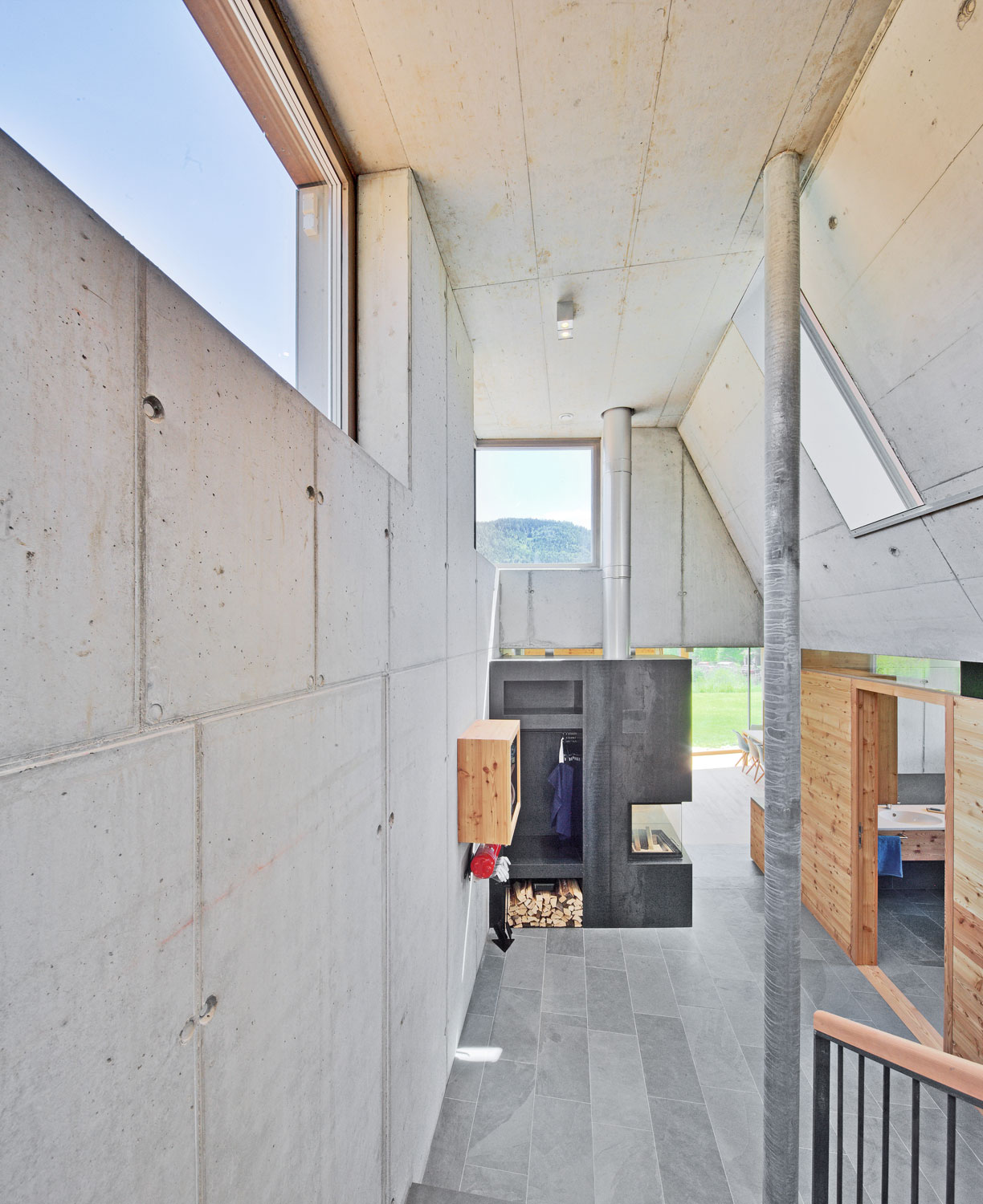 Etwas übersteigerte Raumerlebnisse im Inneren der beiden Häuser, als auch die Überleitung von Eingangszone zum Wohnbereich durch einen Kaminblock, zeigen eine Gratwanderung zur „Erlebnisarchitektur“, die mit hoher Ausführungsqualität einem Tourismusprojekt entspricht.