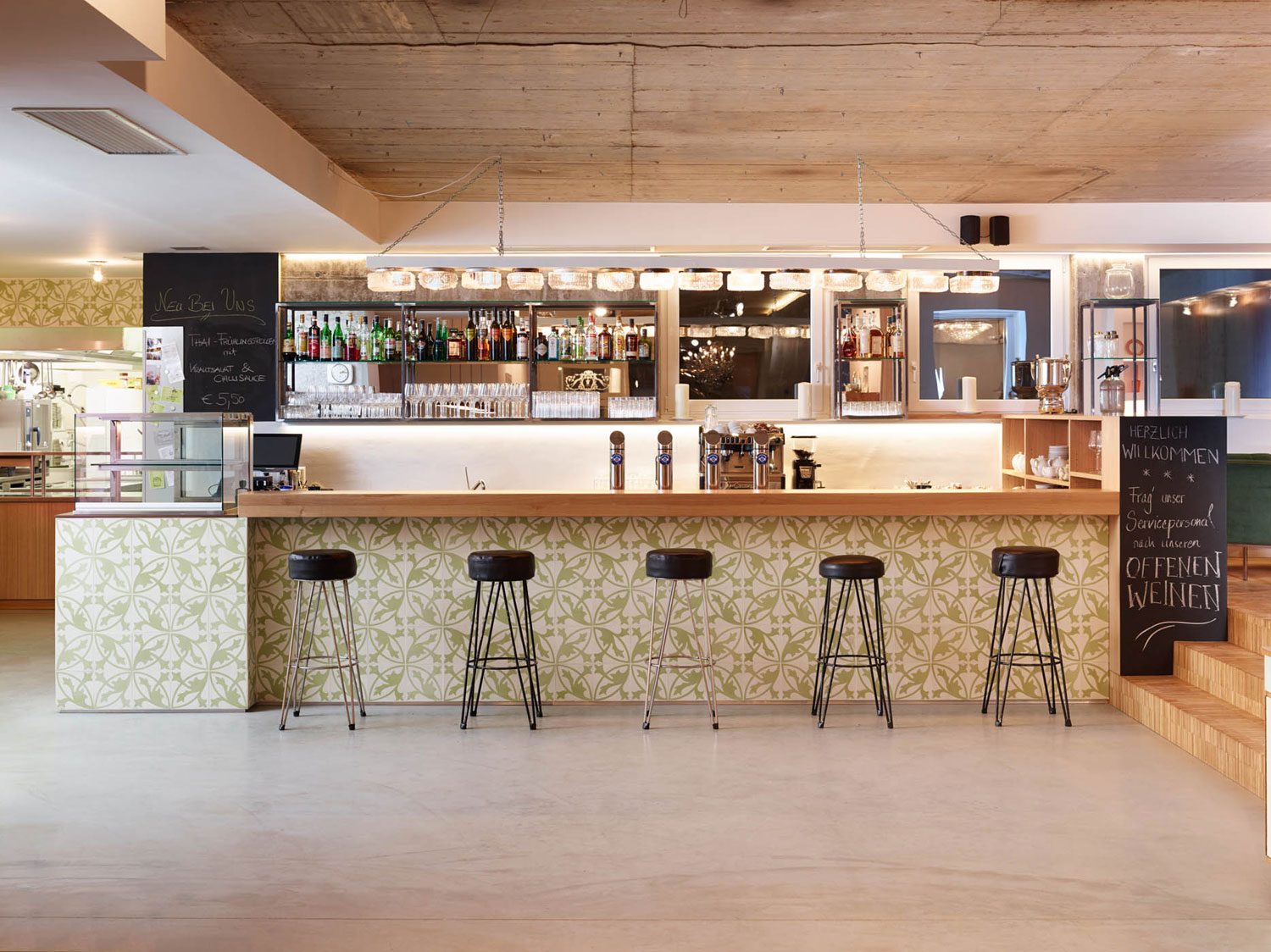 Entstanden ist ein erfrischend unkonventionelles Gasthaus, das ganz offensichtlich Anklang bei Menschen aller Altersstufen und Schichten findet. Zwei große Eichentische regen zum generationenübergreifenden Austausch an, die Weite zwischen den Sitzgruppen schafft ein luftiges Ambiente, das upcycling Mobiliar erzählt Geschichten und die jungen Auszubildenden arbeiten an einem Ort, der die Werte aufs Anschaulichste verkörpert, die wir uns als weltoffene Gesellschaft auf die Fahnen geschrieben haben: Leben in Solidarität und Schönheit durch kulturelle Vielfalt.