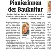 Frauen bauen - Ein Schwerpunkt 2023 im Architektur Haus Kärnten in Kooperation mit dem Theater Wolkenflug, Visible, der Tourismusregion Klagenfurt am Wörthersee, dem Bauarchiv Kärnten, dem Margarete Schütte-Lihotzky Zentrum, dem Büro für Frauen, Chancengleichheit und Generationen der Stadt Klagenfurt, dem UNIKUM, dem Werkstattmuseum sowie den ZT:innen für Steiermark und Kärnten.