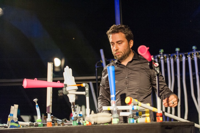 Wir haben Roméo Monteiro 2016 kennengelernt, als er die faszinierende Airmachine Ondřej Adámeks im Steinhaus virtuos in Bewegung setzte. Heuer ist der französische Komponist, Elektroakustiker und Schlagzeuger selbst Artist in Residence des Carinthischen Sommers. Ins Domenig Steinhaus kommt er gemeinsam mit dem Ensemble Spat‘sonore, das bereits auf so renommierten wie verschiedenen Bühnen spielte wie dem Musiques démesurées Festival in Clermont-Ferrand, dem Theater des Bouffes du Nord Paris, dem Jazzfestival Århus oder dem legendären Berliner Szeneclub Berghain. Spat‘sonore widmet sich der Spatsialisierung von Musik, also der punktgenauen Projektion von Klängen im Raum. Allerdings, und das ist ihre Besonderheit, nicht wie sonst mit digitalen Mitteln, sondern mittels mechanischer neuer Musikinstrumentenmaschinen, zusammengebaut aus klassischen Hörnern, Trompetentrichtern, Schläuchen, integrierten Schlaginstrumenten und vielem mehr. Die „Spats“ sind raumgreifende, fantastische Wunderwerke, die genau für den jeweiligen Ort der Aufführung konzipiert werden. Sie scheinen direkt aus einer Alchimistenwerkstatt zu entstammen. Das Publikum kann auf Kissen darunter sitzen und erlebt eine einzigartige Klangwolke.